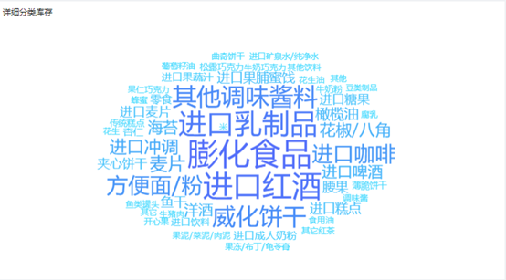 为了更清晰地看到各小类的库存情况,我们还可以把小类库存量制作成图云,能够和上图联动。