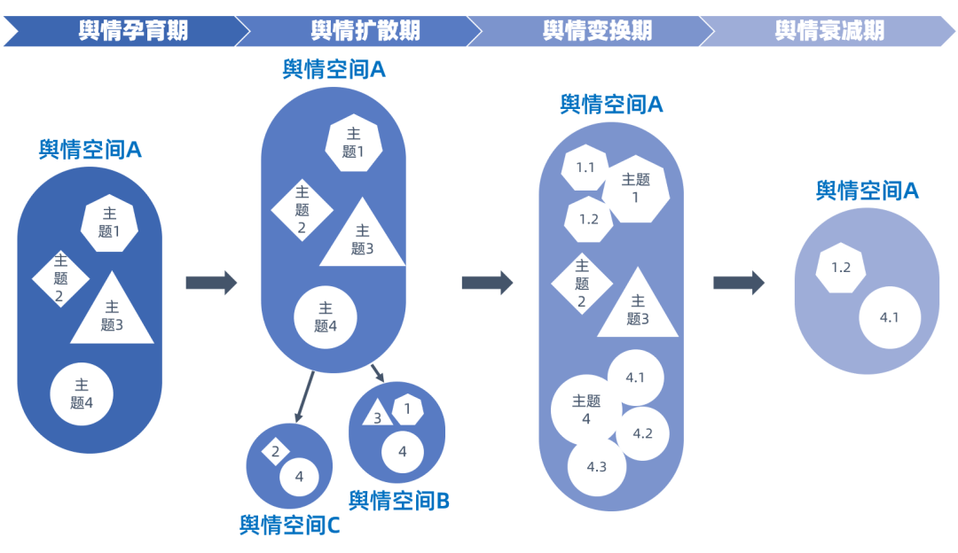 综合三阶段、四阶段、粒子扩散模型等已有的舆情阶段划分,本文以时间、空间两个重要维度划分舆情演变过程。