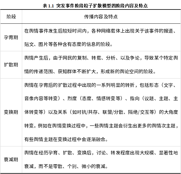 有学者提出“涨落、序变、冲突和衰变”的四阶段划分模型(刘毅,2007),还有“起始、持续高涨、波动变化、淡化或消落”(姜胜洪,2010)。以上四阶段模型解决了部分三阶段模型的问题,但仍在逻辑性、接续性、描绘准确度等方面存在不足。
