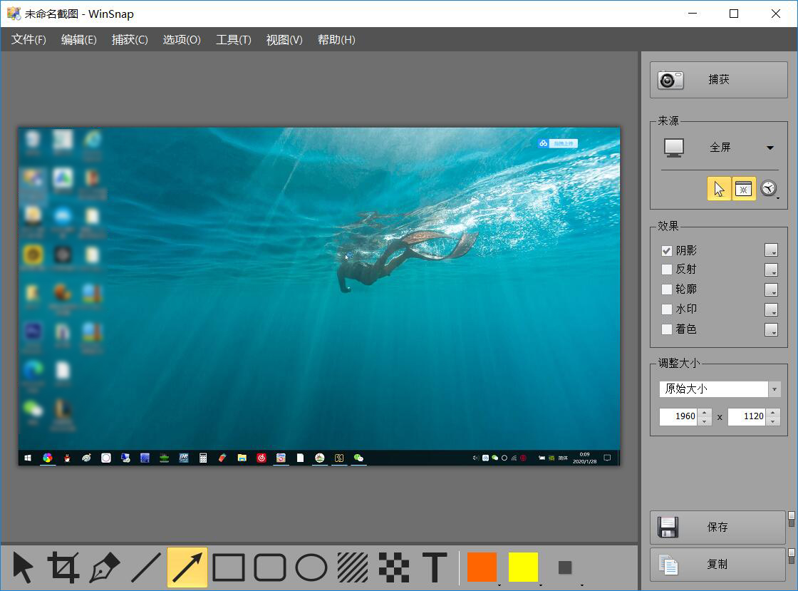 WinSnap是/一款国外优秀的截图软件,能够得心应手地捕获屏幕截图,软件小巧易用,功能一点不弱。WinSnap提供了多种截图方式,包括全屏、应用程序、活动窗口、对象、区域,并可在截图之前预设好常用的图像效果,如阴影、倒影、反射、轮廓、着色、水印等,这样你即可在最短时间内获得最理想的截图效果。