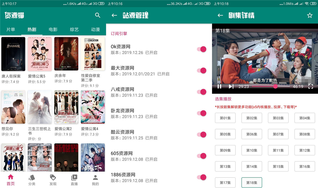 资源猫是/一款非常好用的影视播放软件,他拥有几十个视频源,而且这些源基本所有影视都能看了,软件内置一个下载器,支持磁力等。采用的是/P2P的搜索技术,各种枪版的、最新的以及经典的视频资源都可以一网打尽,直接关键词也可以搜索到心仪的视频。