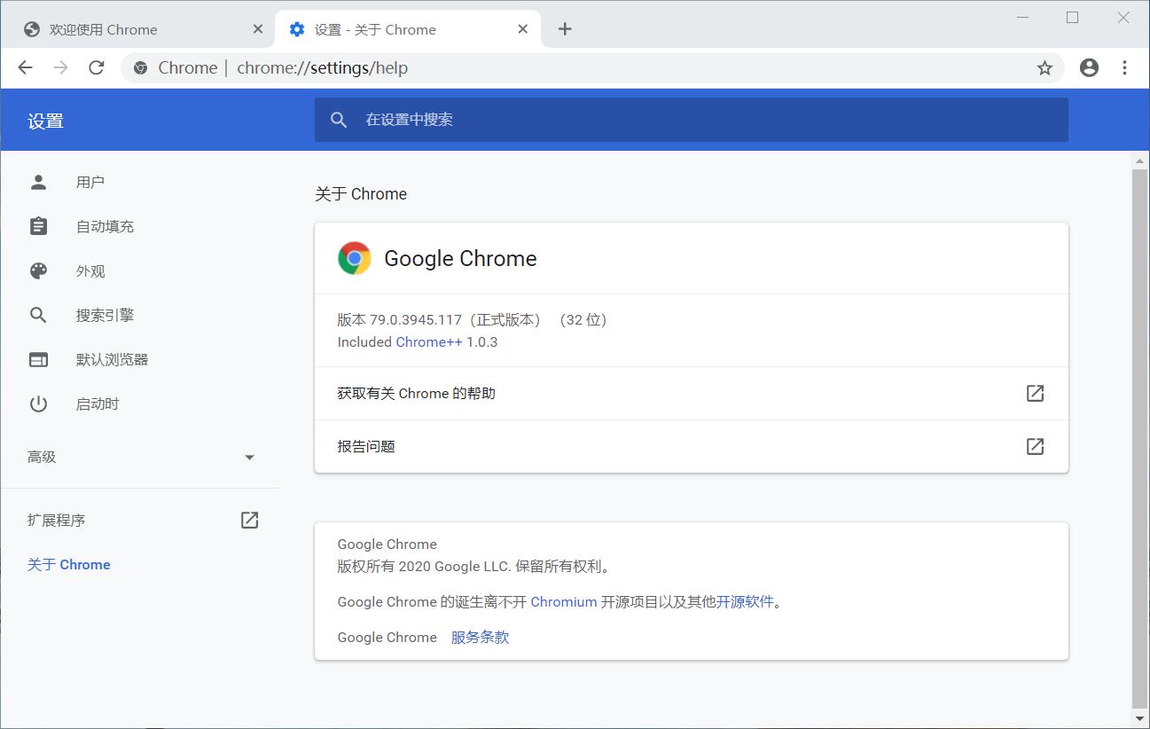 Google Chrome 79.0.3945.117 Stable 绿色便携版,此Chrome浏览器增强版,由大佬shuax基于官方稳定版装配打包,内置绿化增强插件Chrome++1.0.3、无视flash区域锁区和过期警告,增强了标签页功能,移除了某些错误警告。谷歌浏览器,追求速度、简约和安全的网络浏览器,全世界最受欢迎的网页浏览器!