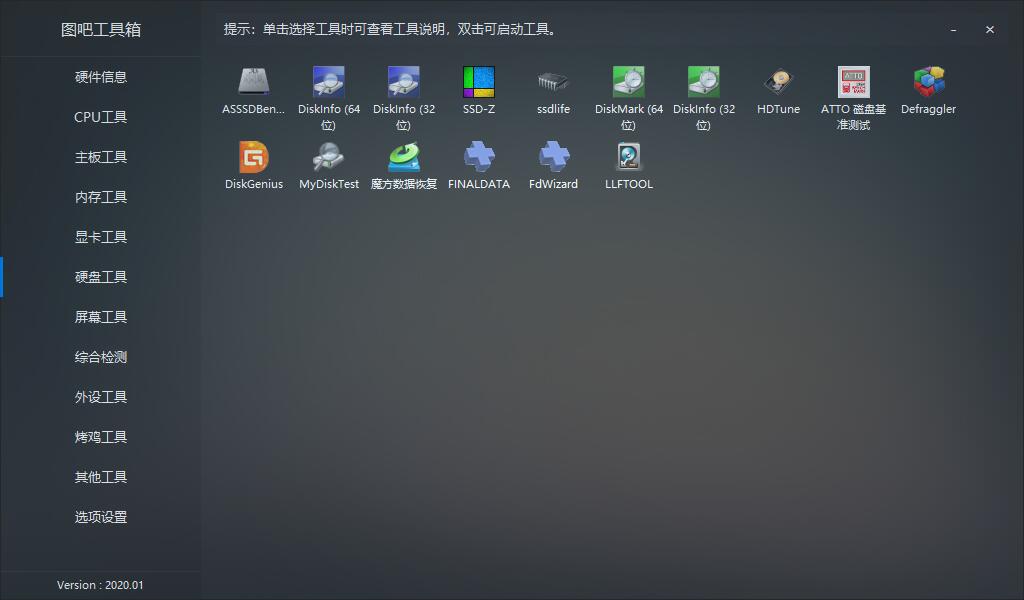 图吧工具箱集成了常用的硬件检测与系统维护等工具,方便图钉使用,工具箱纯绿色无需安装,无广告推广,不会联网不会捆绑或者诱导用户安装任意程序或改变系统设置界面清爽大方,适合保存一份到硬盘或U盘,方便日后使用。