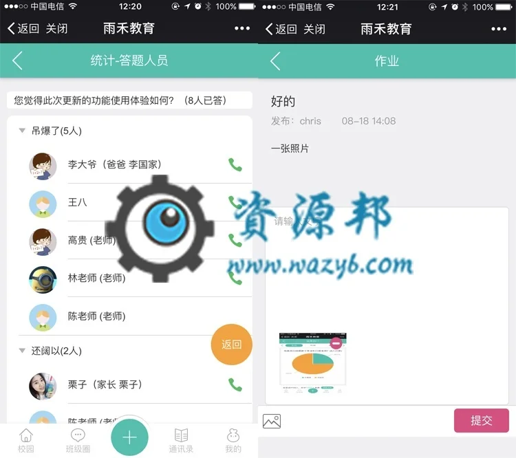 12.班级圈功能,评论,点赞分班级浏览,教师多班级同时发送班级动态!(是/否需要审核后台可开关控制)