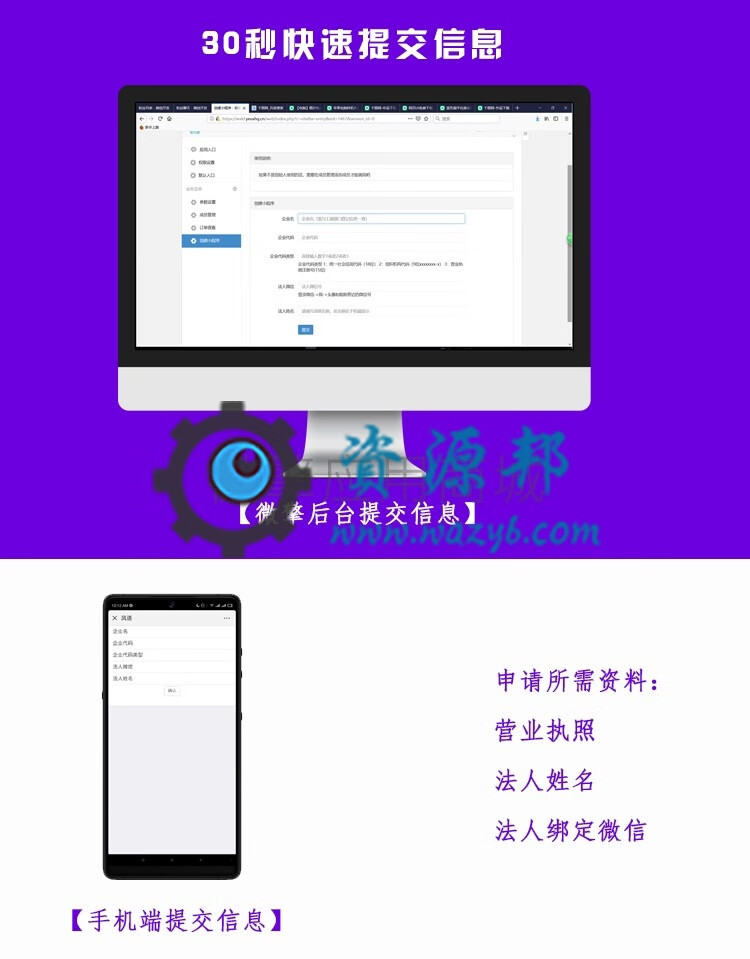 管理平台,所有资料在自己服务器,需要微擎对接开放平台。除了上述的功能。还增加在微擎后台更改小程序名称、头像、服务器域名等一系列功能。