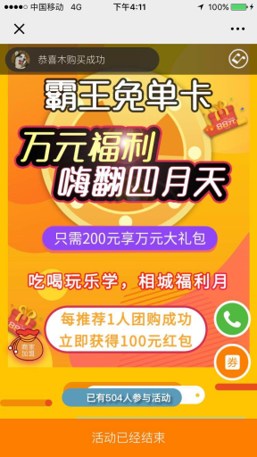 A可将生成二维码或链接分享给B用户,B用户买了A用户将拿到一个红包