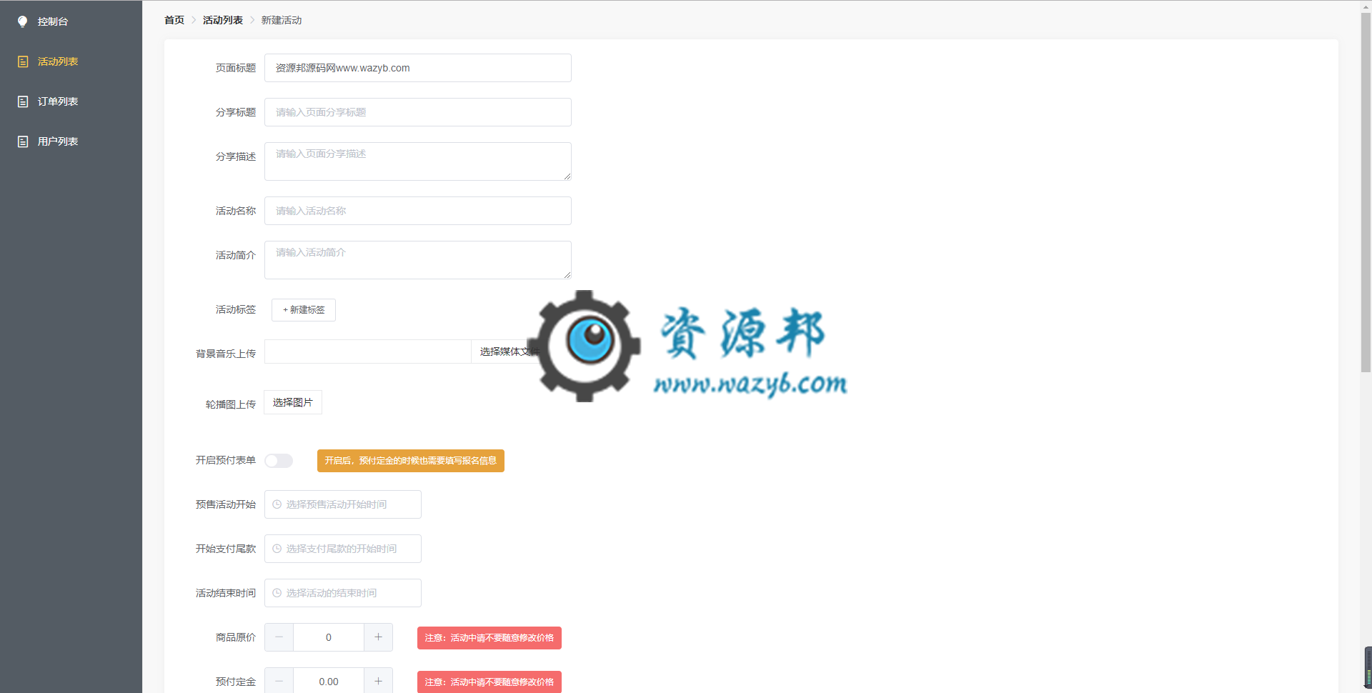 1、设定好预付的定金,以及定金抵扣的金额;