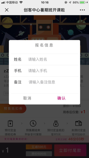 4、填写报名信息,支付尾款成功,后台可查看订单信息和报名信息;