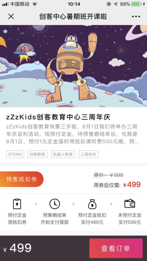 暑期很多大学生回来自己的老家,希望找到合适的暑假工,而很多家长则希望孩子们的暑假不能荒废了,希望给孩子报个培训班,但是/教培机构不知道自己能招到多少学生,所以也不敢随意招聘暑期实习生,那么预售促销的模式适合你。