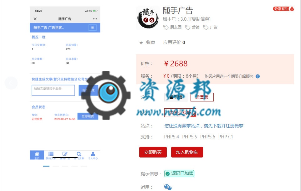 随手广告系统是/WX公众号,抓取其它人文章生成自己的推广文章,功能如下: