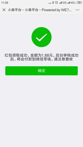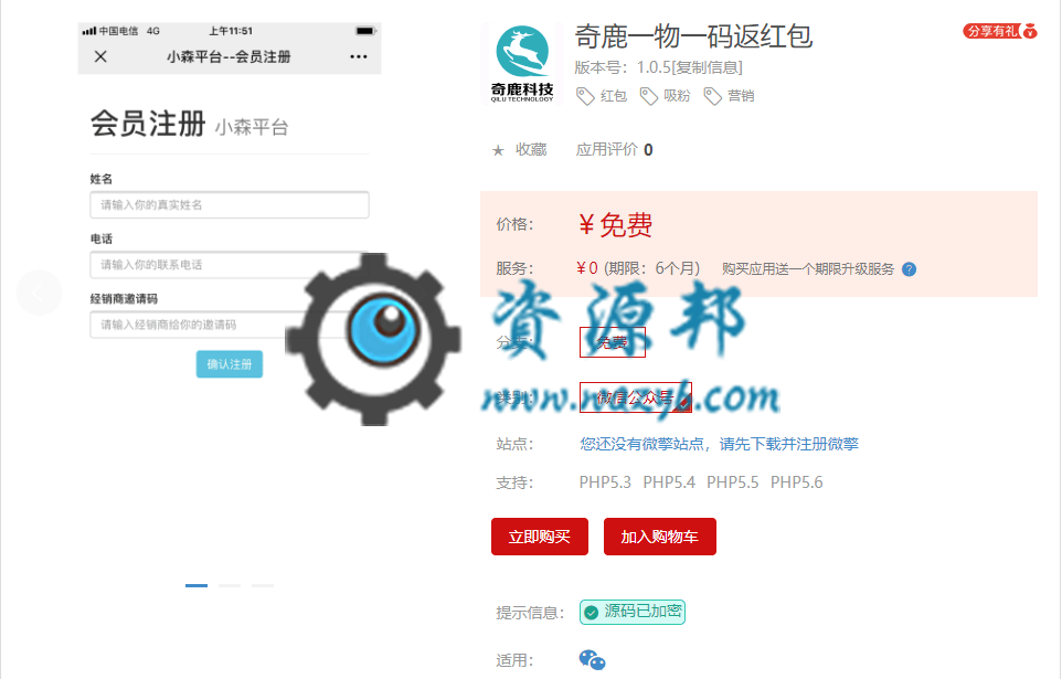 应用场景为需要注册了的会员才能领取红包,其它人扫码提示购买的是/正品。