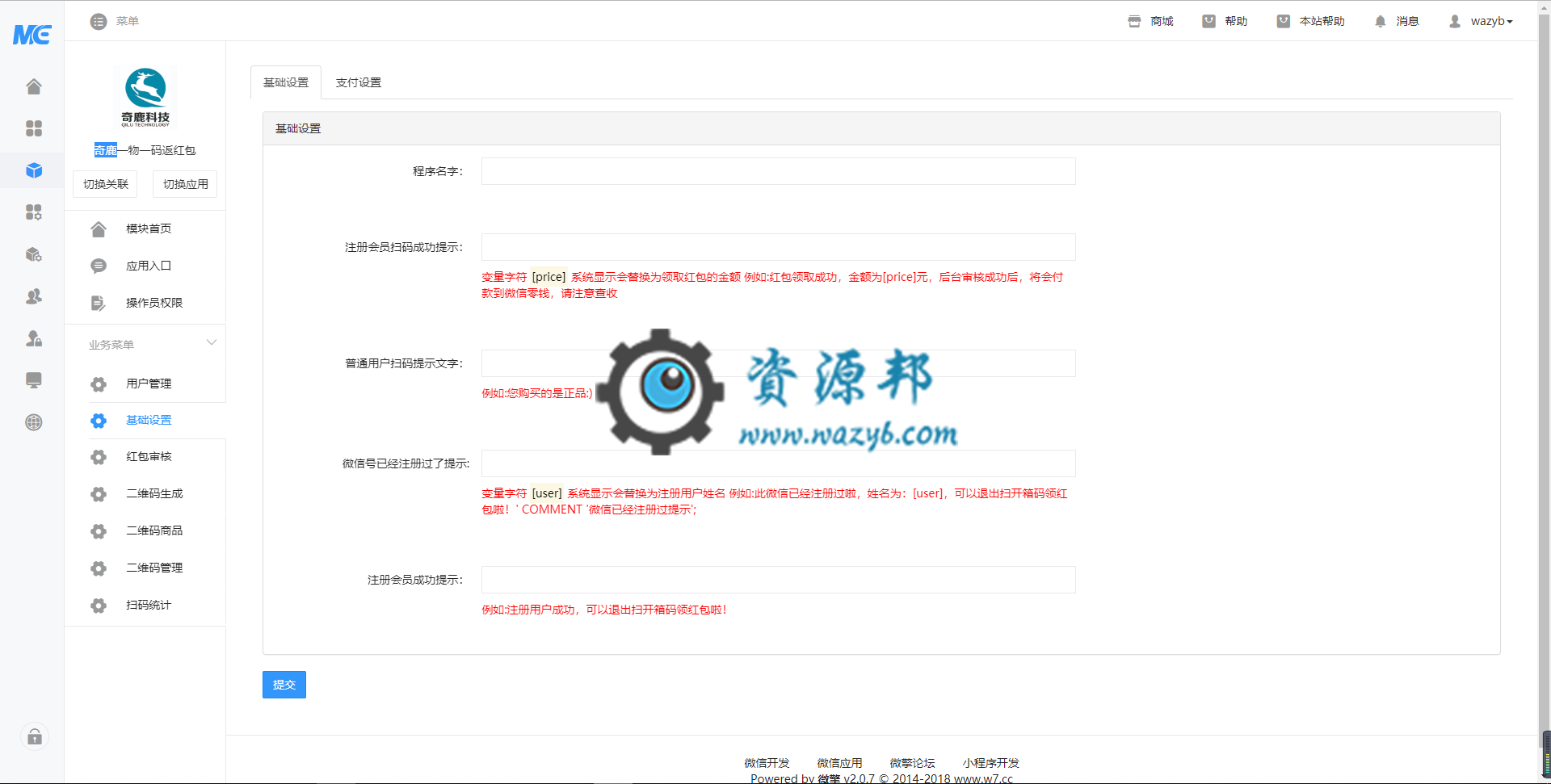 奇鹿一物一码返红包模块功能适用于包装上印刷的返现二维码!