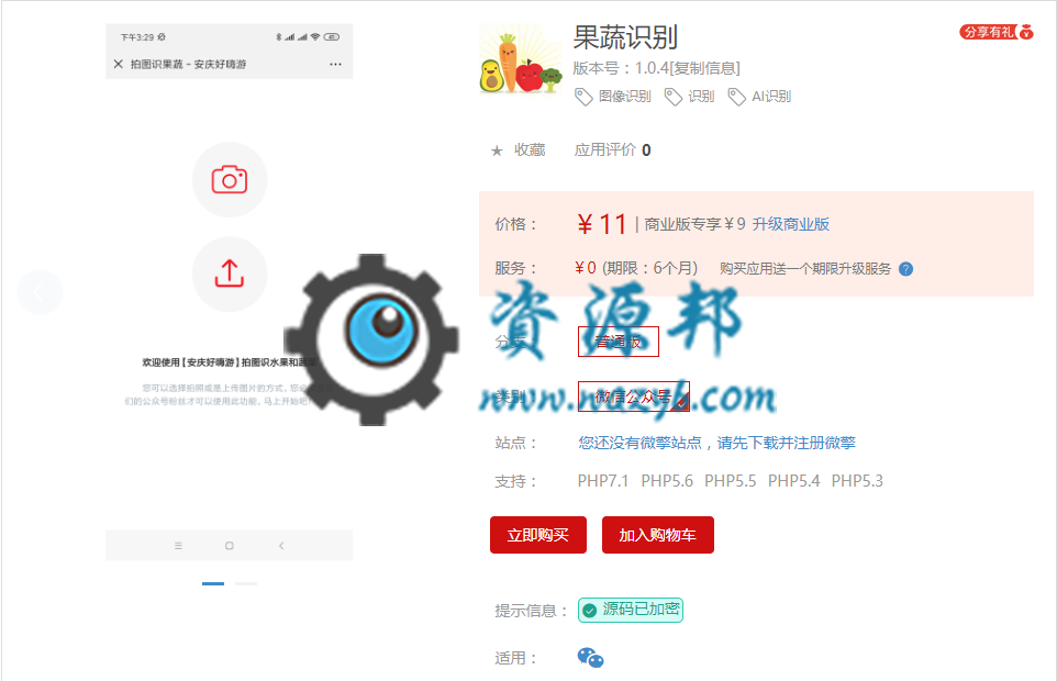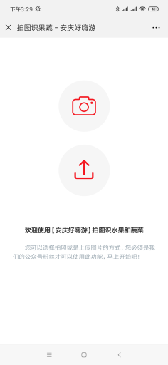 果蔬识别是/一款引导用户拍照或者上传果蔬图片,自动识别果蔬名称的应用模块,可用于为公众号吸粉~