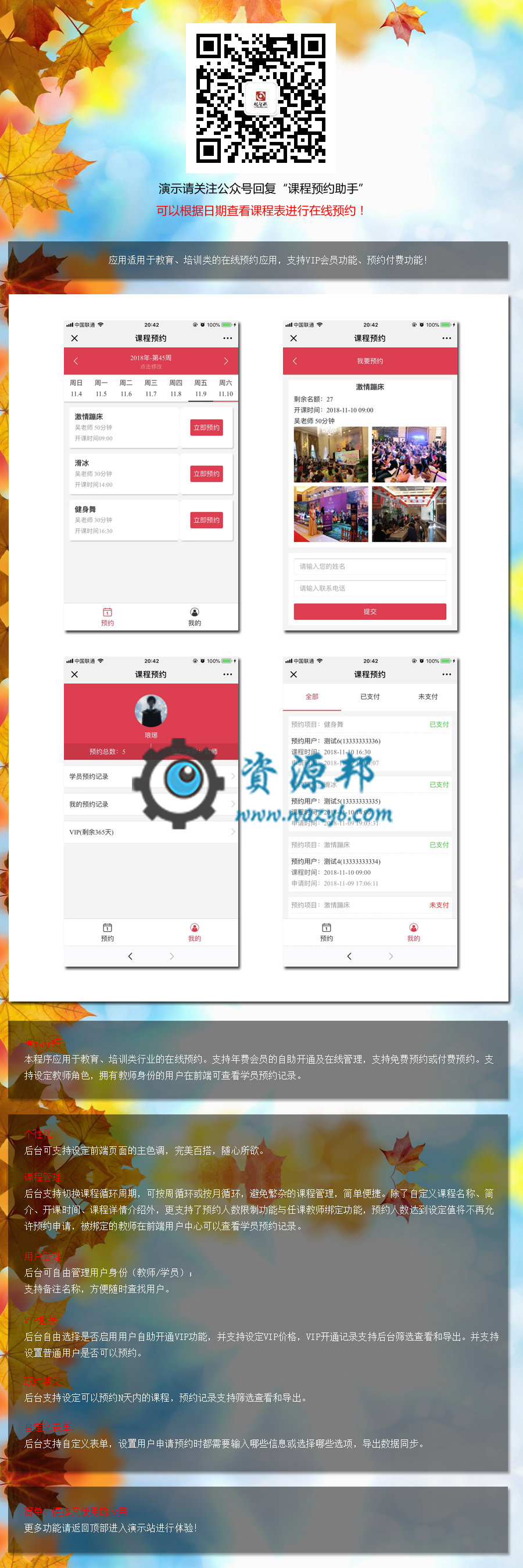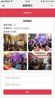 课程预约助手应用于教育、培训类行业的在线预约。支持年费会员的自助开通及在线管理,支持免费预约或付费预约。