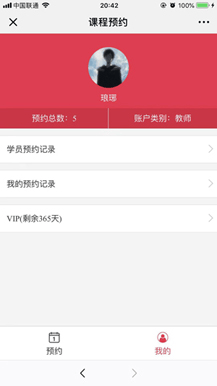 支持设定教师角色,拥有教师身份的用户在前端可查看学员预约记录。