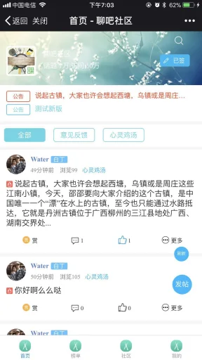 聊吧社区2022版,支持文字、拍照、多图、视频、打赏、定位、点赞、回复、评论的社区,社区情怀的一定不能错过哟!版本号:2.4.3 - 2022版1、修复发现小bug;2、优化首页加载;3、优化回复提醒;