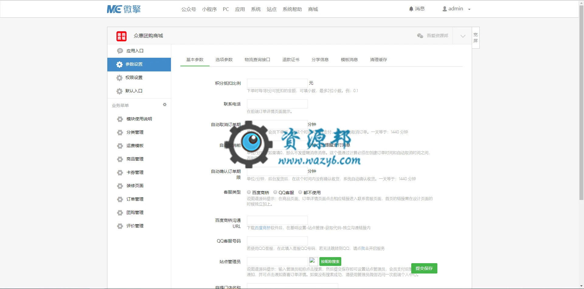 众惠团购商城是/一款基于微擎平台的开发的团购商城,可任意切换商城模式:普通商城、团购商城、普通商城+团购商城。支持自定义界面设计,可自由设计页面导航、幻灯片、通知、优惠券、商品、标题、图片组等,每个页面都有一个独立的链接。最高设置二级分类,可切换使用分类级数。