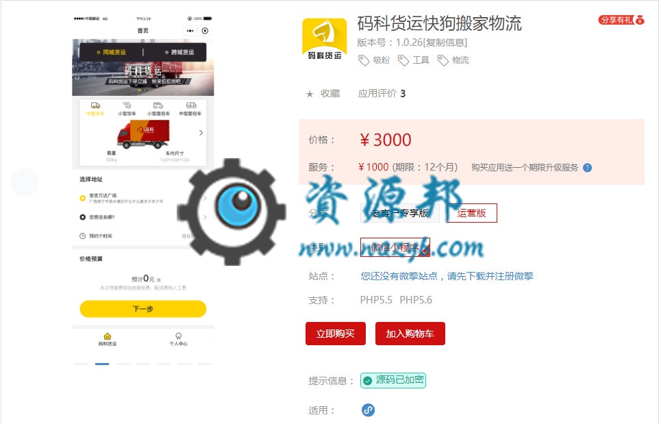 码科货运快狗搬家物流、货运小程序、物流小程序、WX小程序、微擎小程序、小程序
