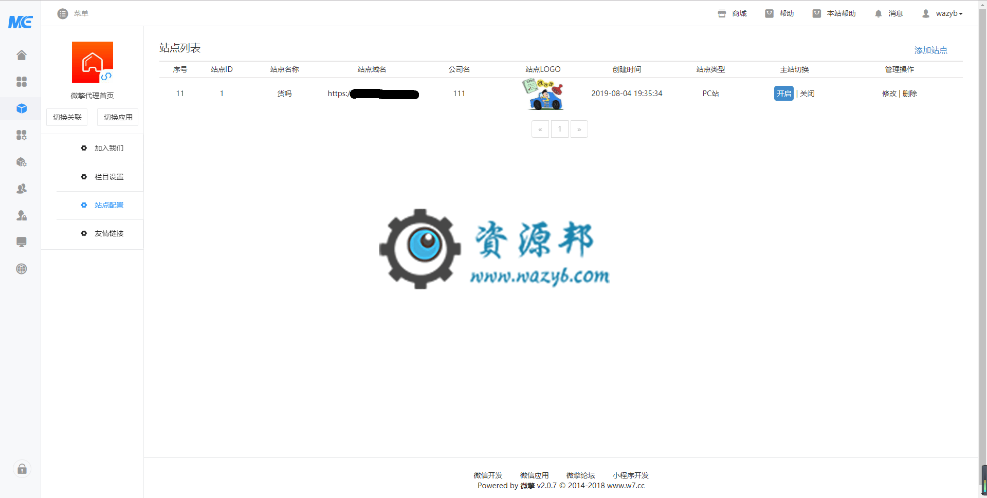 8、支持代理站一键控制关闭开启,代理也可以自主选择开启首页或登录页;