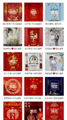 电子请柬喜帖邀请函是/一款精美的WX电子请柬邀请函制作系统,适合影楼婚庆使用,百套模板任意选择,用户操作简单,替换图片,修改文字,设置音乐发布生成,兼容99%的移动WX端。