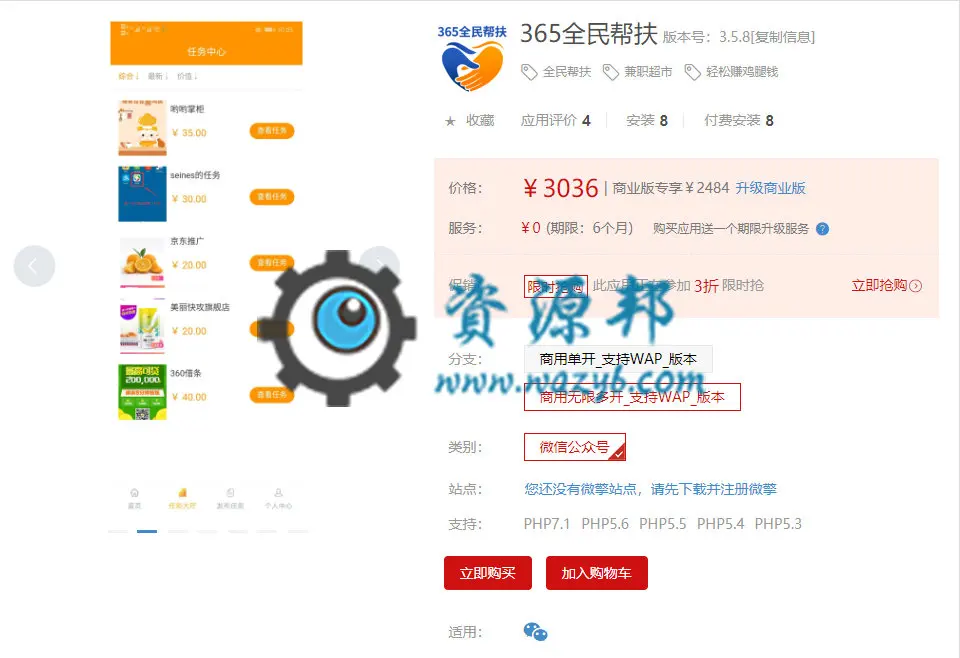 365全民帮扶,帮你低成本推广自己的产品、平台、自媒体号,可以用来做淘宝刷单系统。支持WX公众号H5,支持WAP智能切换支持WX公众号H5 支持WAP智能切换。