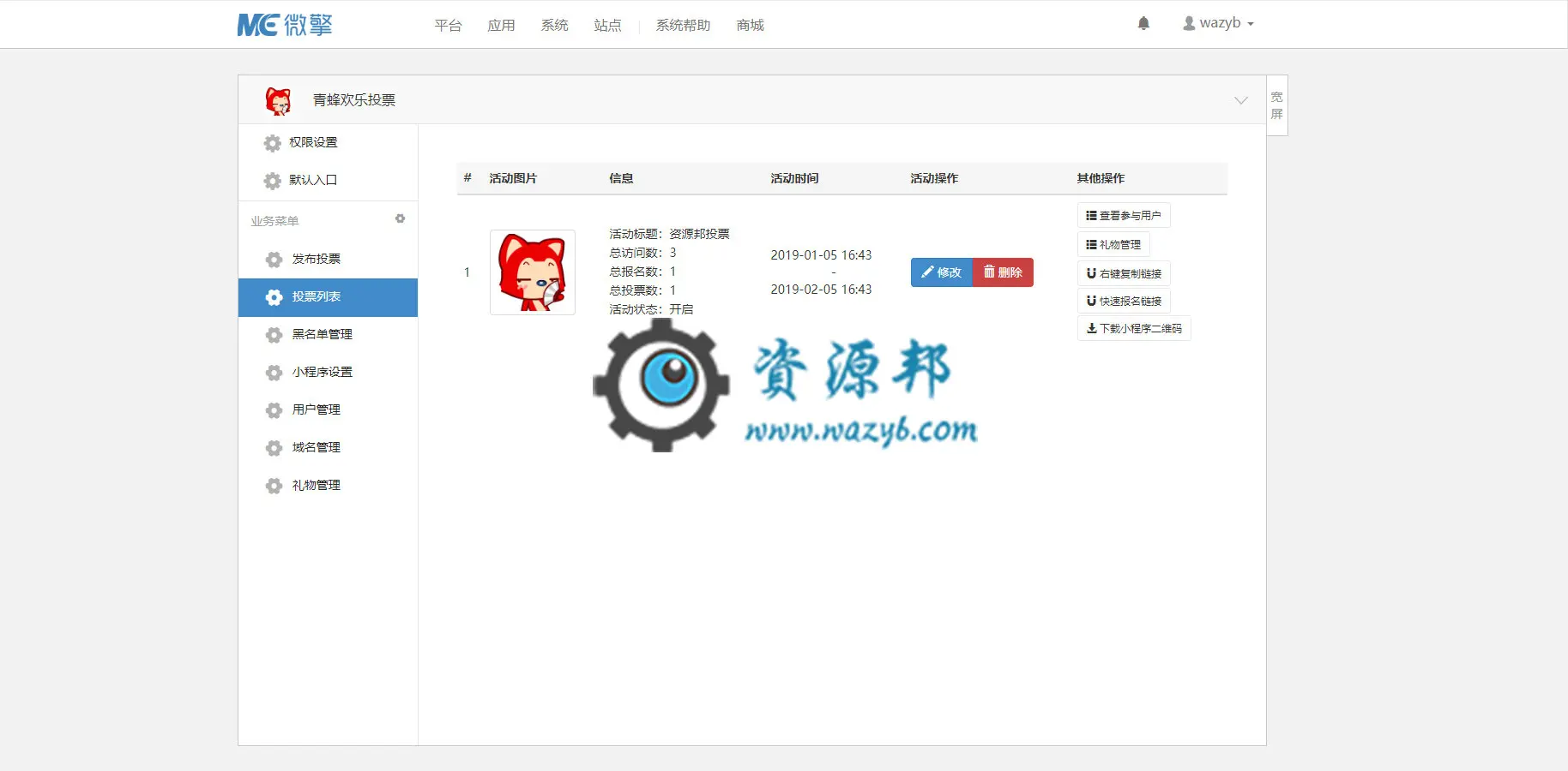 青蜂欢乐投票是/一款支持公众号+小程序双端投票模块,多活动同时进行,自定义界面风格,视频上传 音频上传,评论功能,送礼功能,有效的防刷票 ,设置每分钟获得票数超出设定自动锁定用户作品。